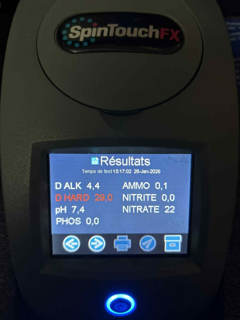 changements d’eau : 1/2 robinet 1/2 osmosée à raison de 10% tous les 3 jours pendant 2 semaines.